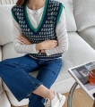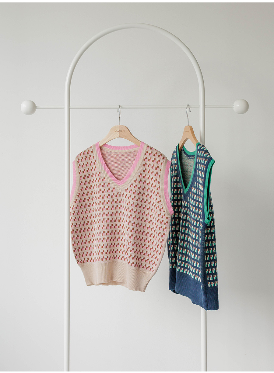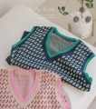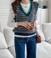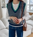 毎日同じニットベストが飽きた方に、補色のカラー配色がユニークなニットベストおすすめ:) (2color)