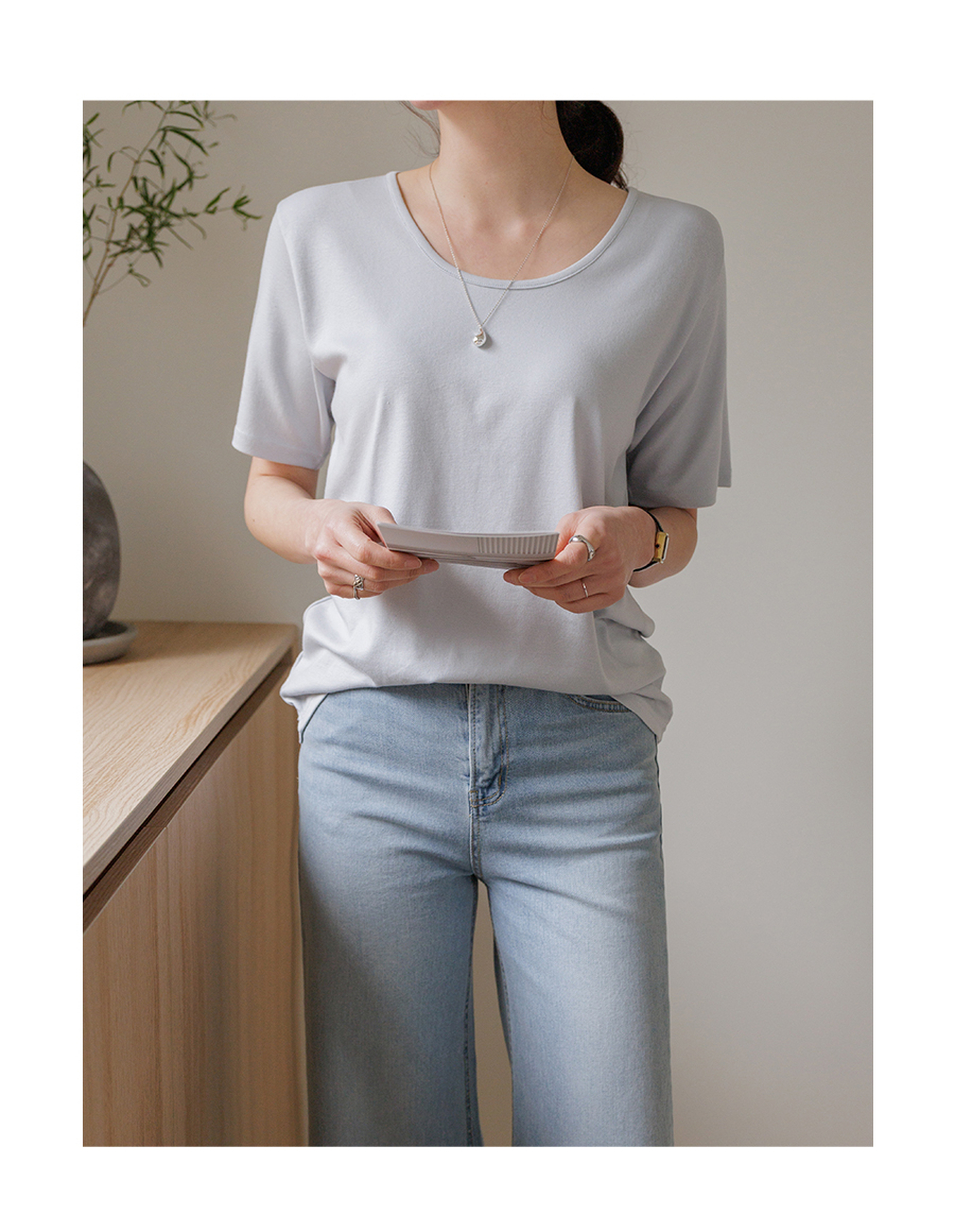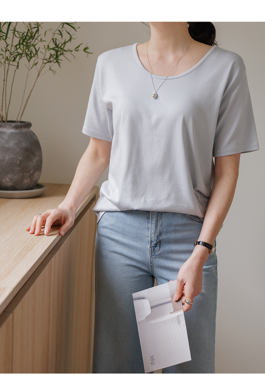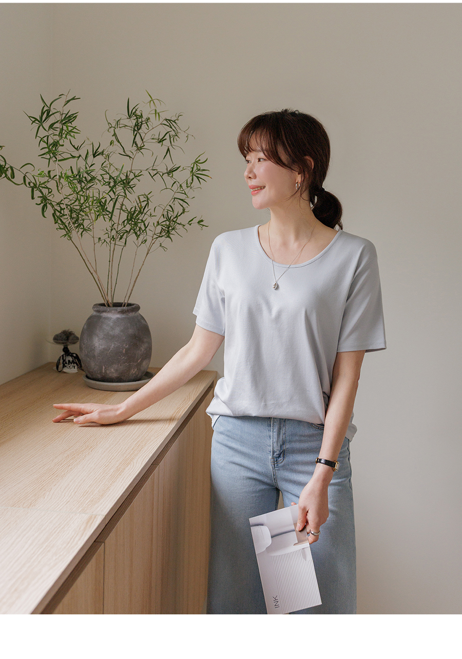 갑갑함 없이 입기 좋은 U넥 반팔 티