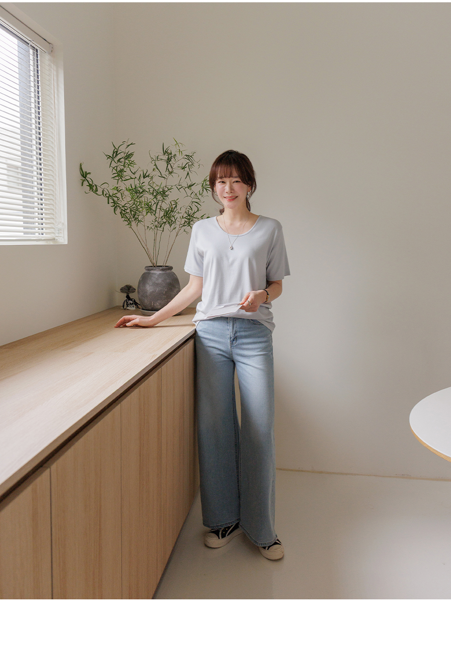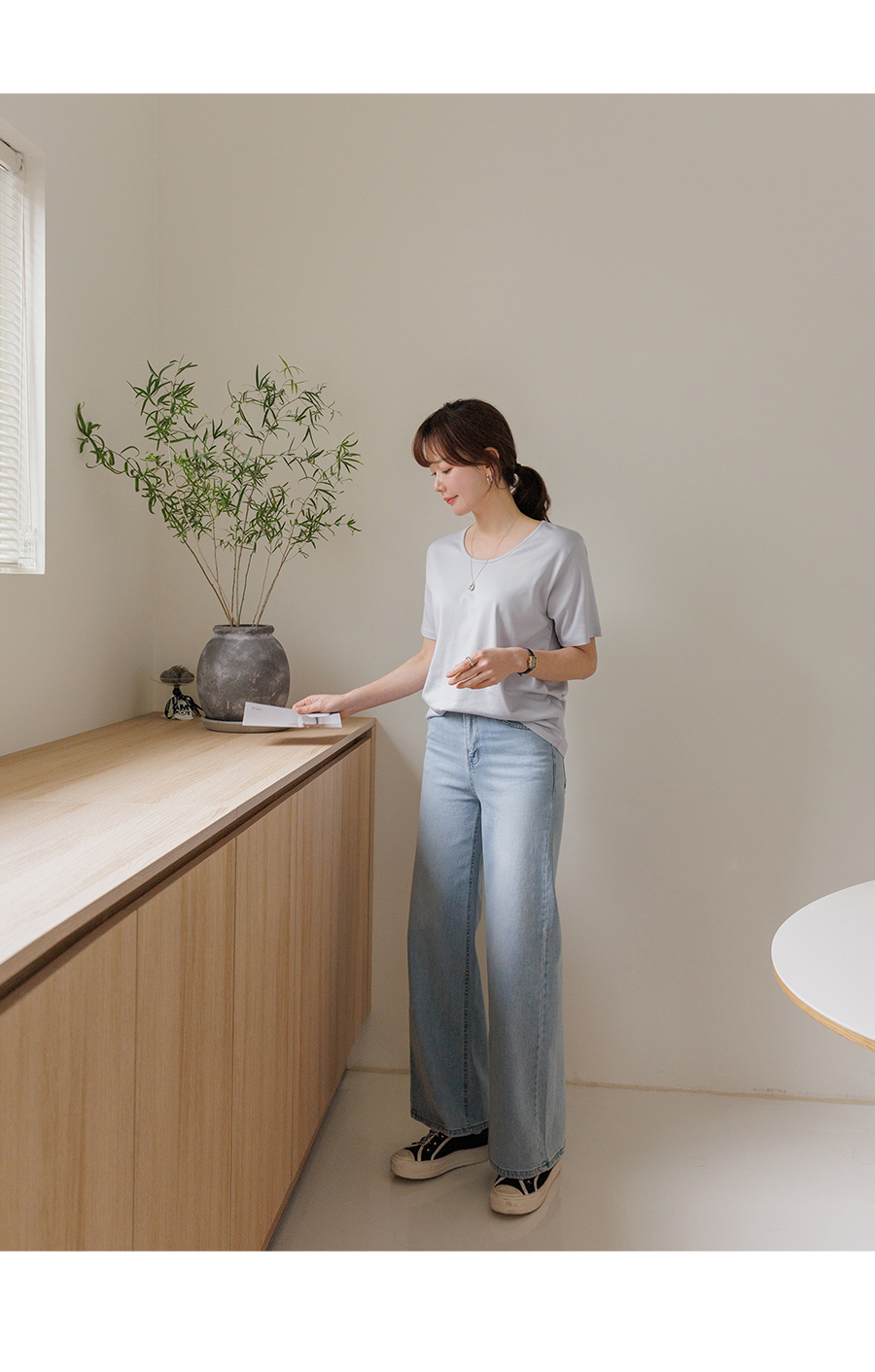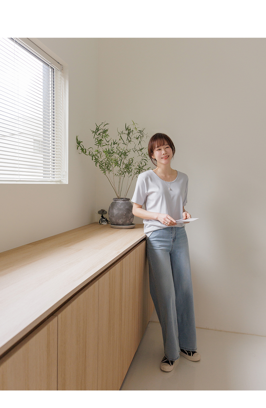 갑갑함 없이 입기 좋은 U넥 반팔 티
