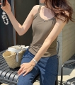 下着心配NO、内側に隠された内蔵パッド!柔らかくしっかりと作られたキャップ袖なしティー(7color/M,L/クロップド、基本)