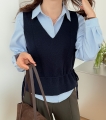 別にまた一緒に]シャツ+ニットベストSETコスパ GOOD!時間節約テム!快適で素敵な(3color)