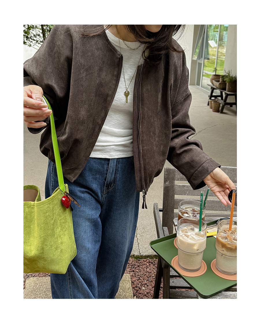 スエード素材のショルダーバッグシンプルでミニマルなデザイン! (6color)