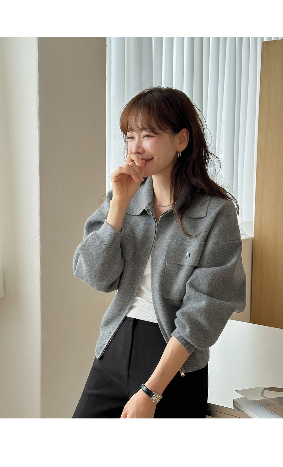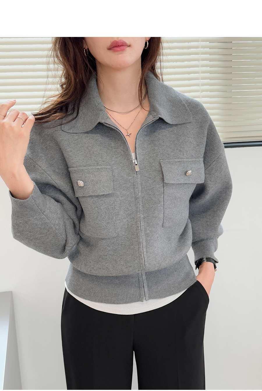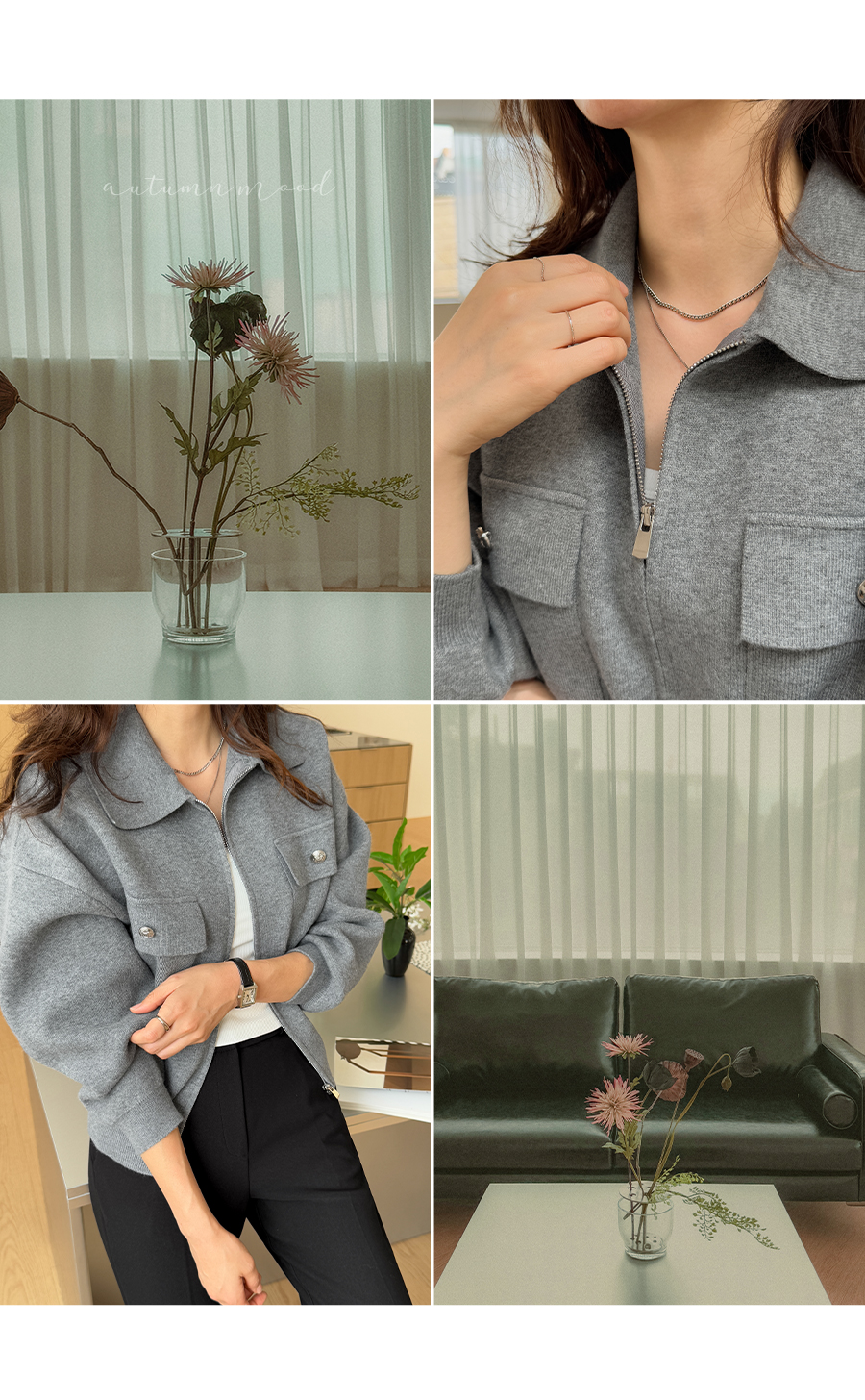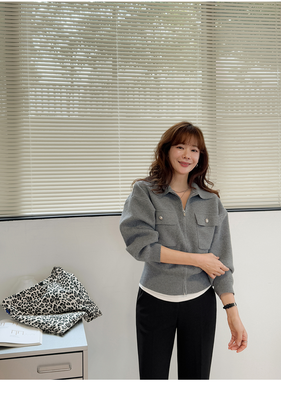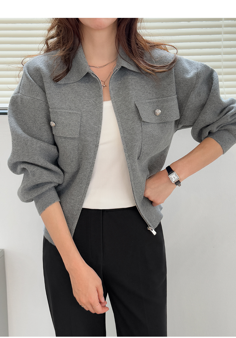 심플한 집업 디자인의 가디건이에요