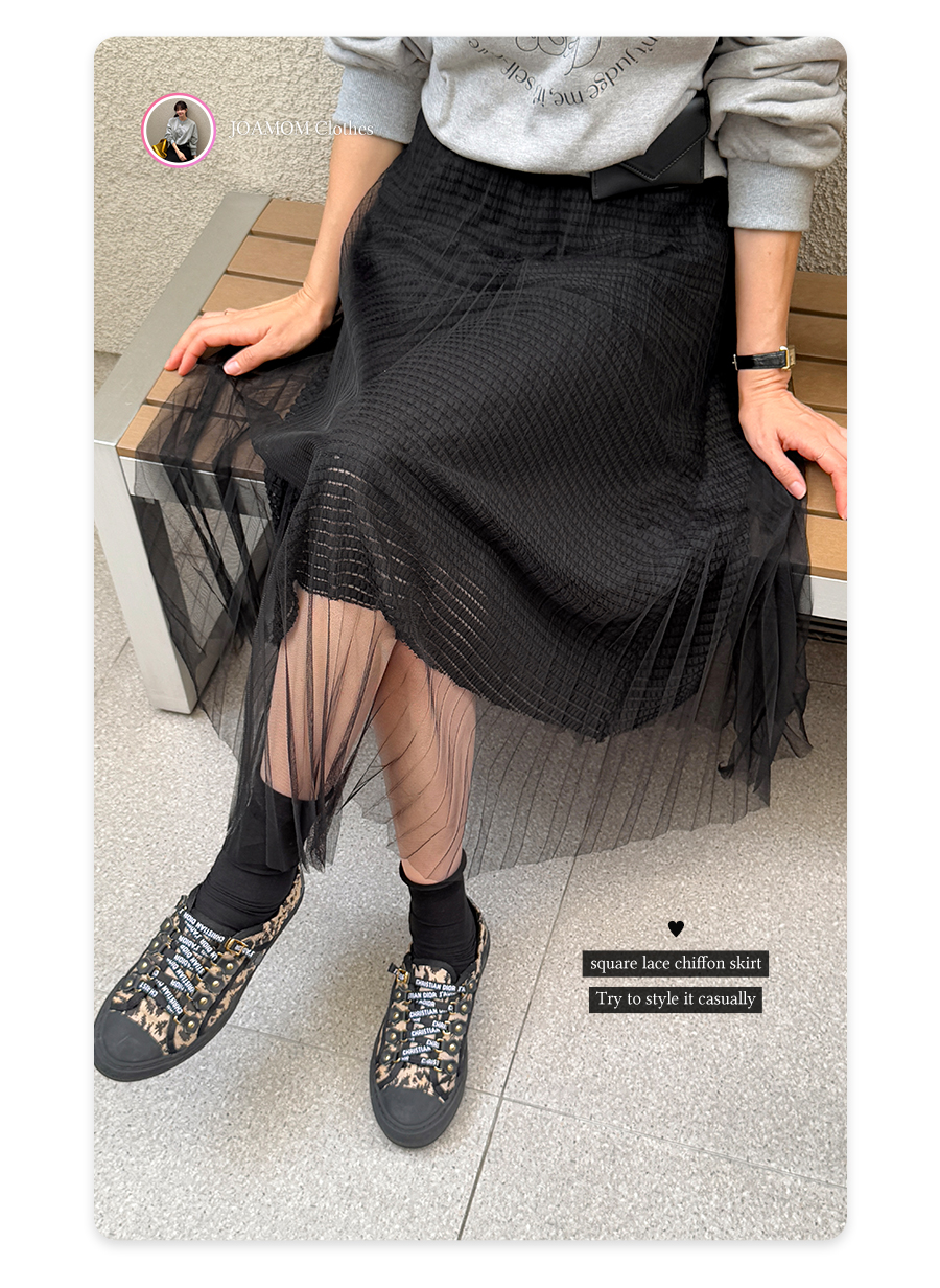 스퀘어 패턴의 레이스+쉬폰 소재로