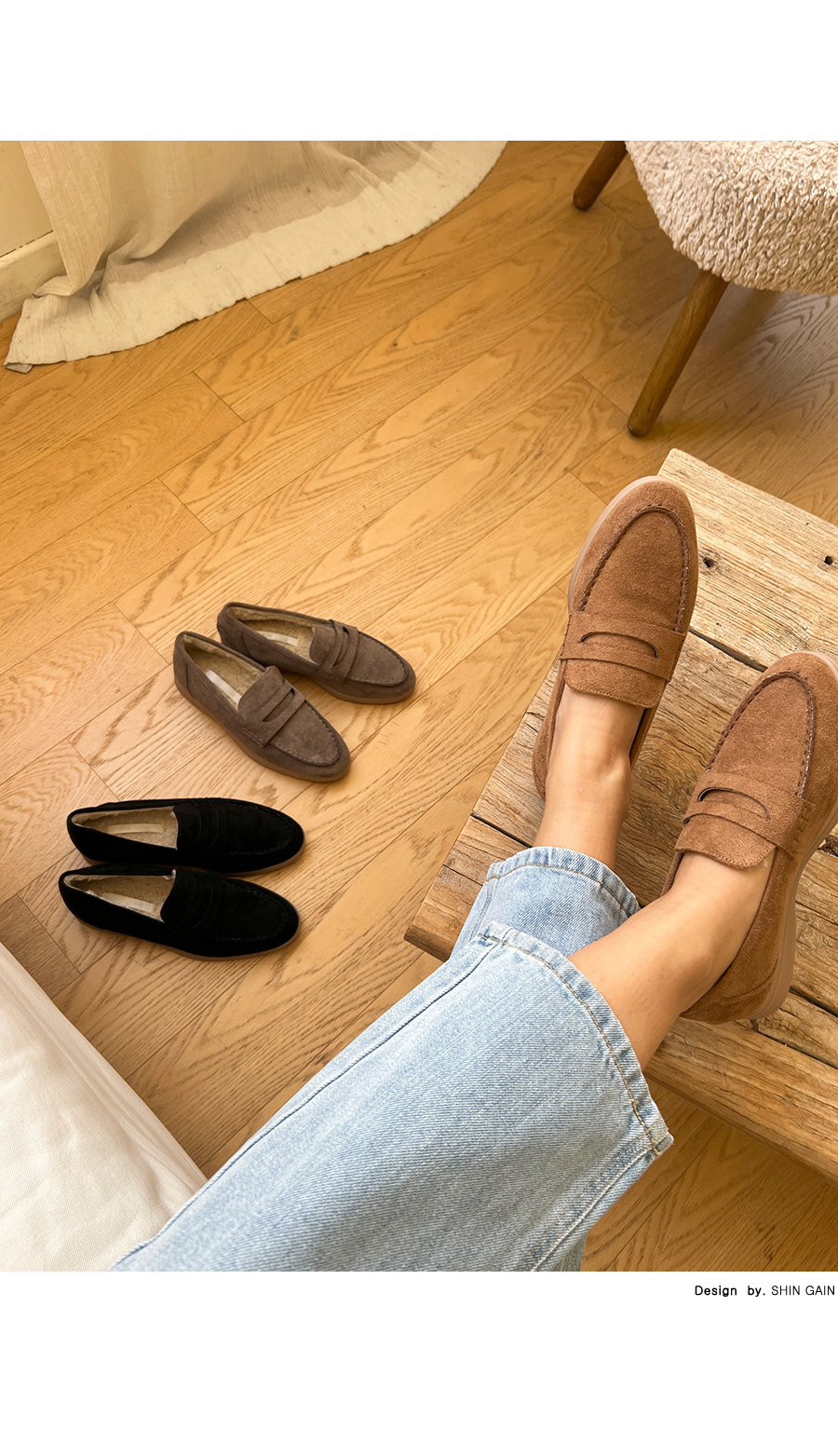 따뜻하게 신을 수 있는 스웨이드 로퍼에요