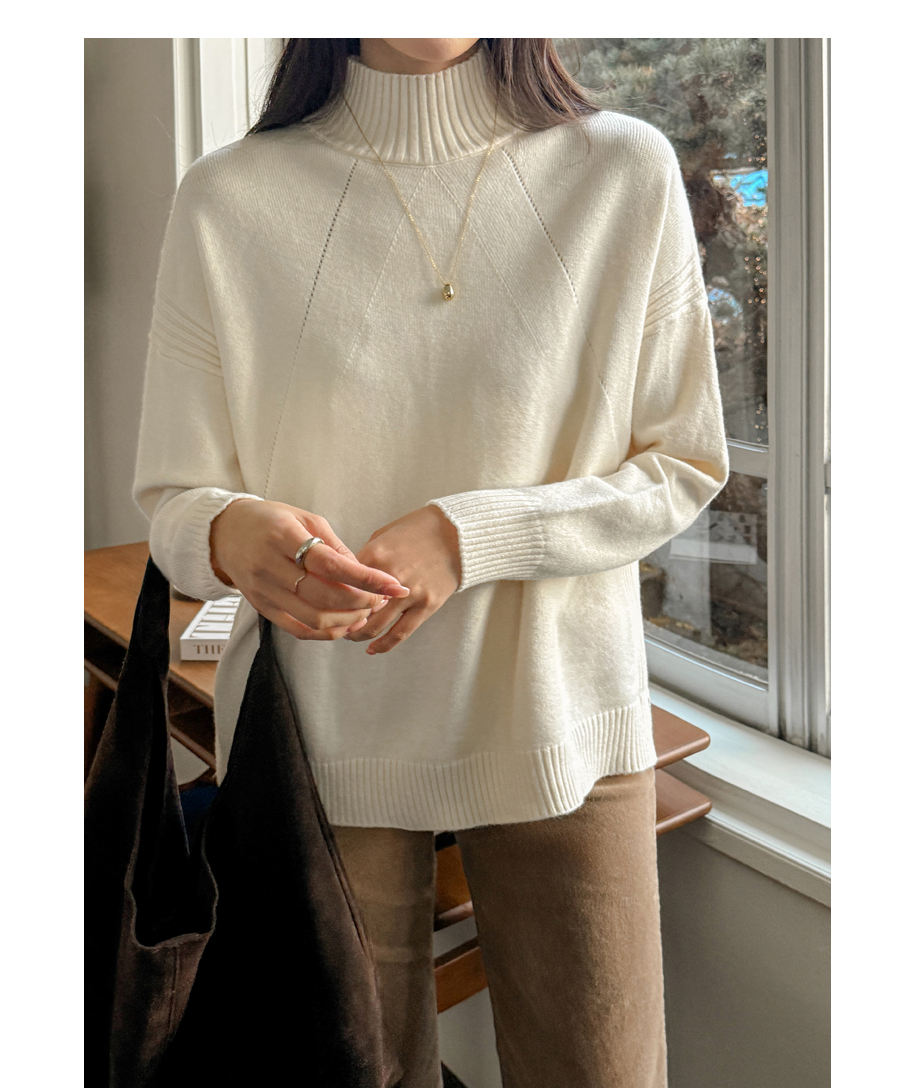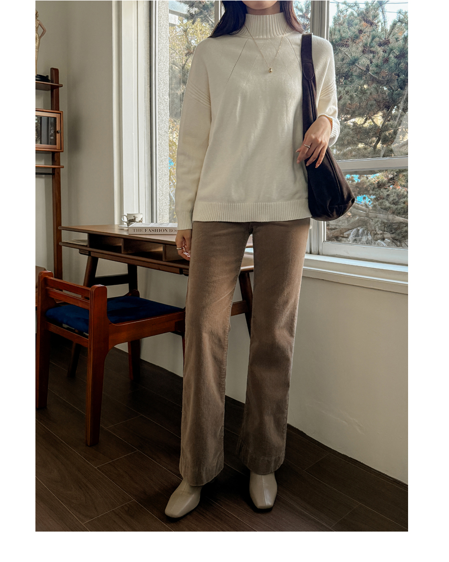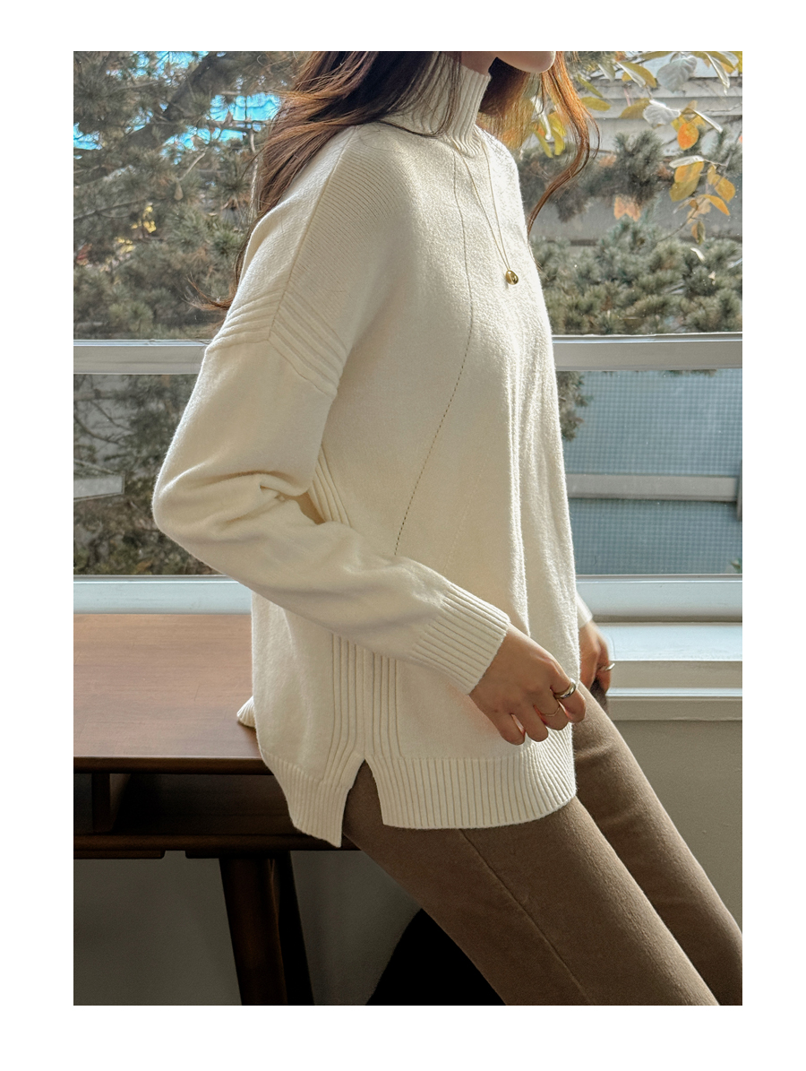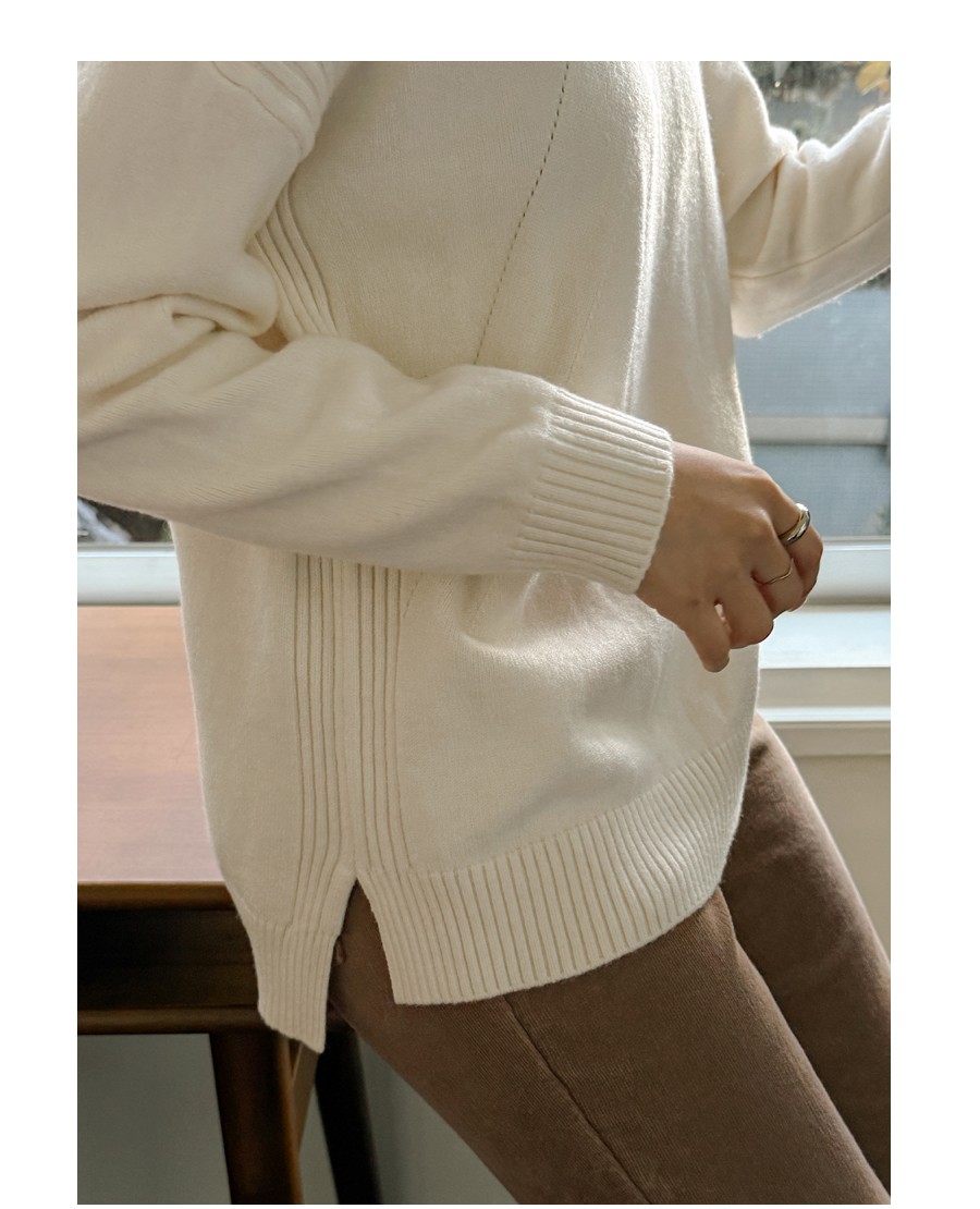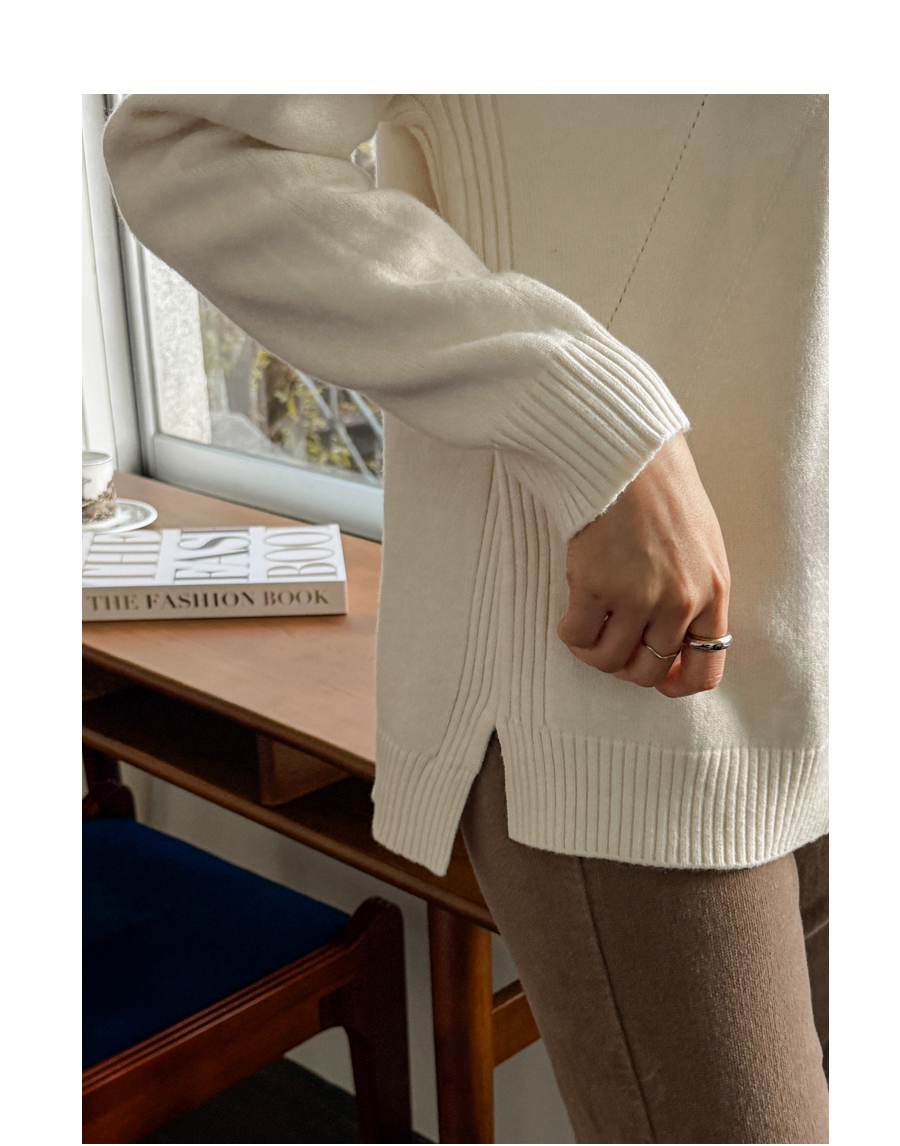 넥과 밑단의 굵직한 골지 짜임이