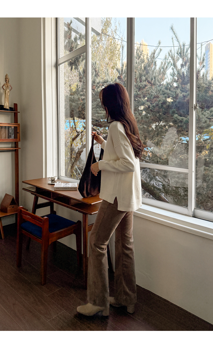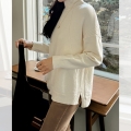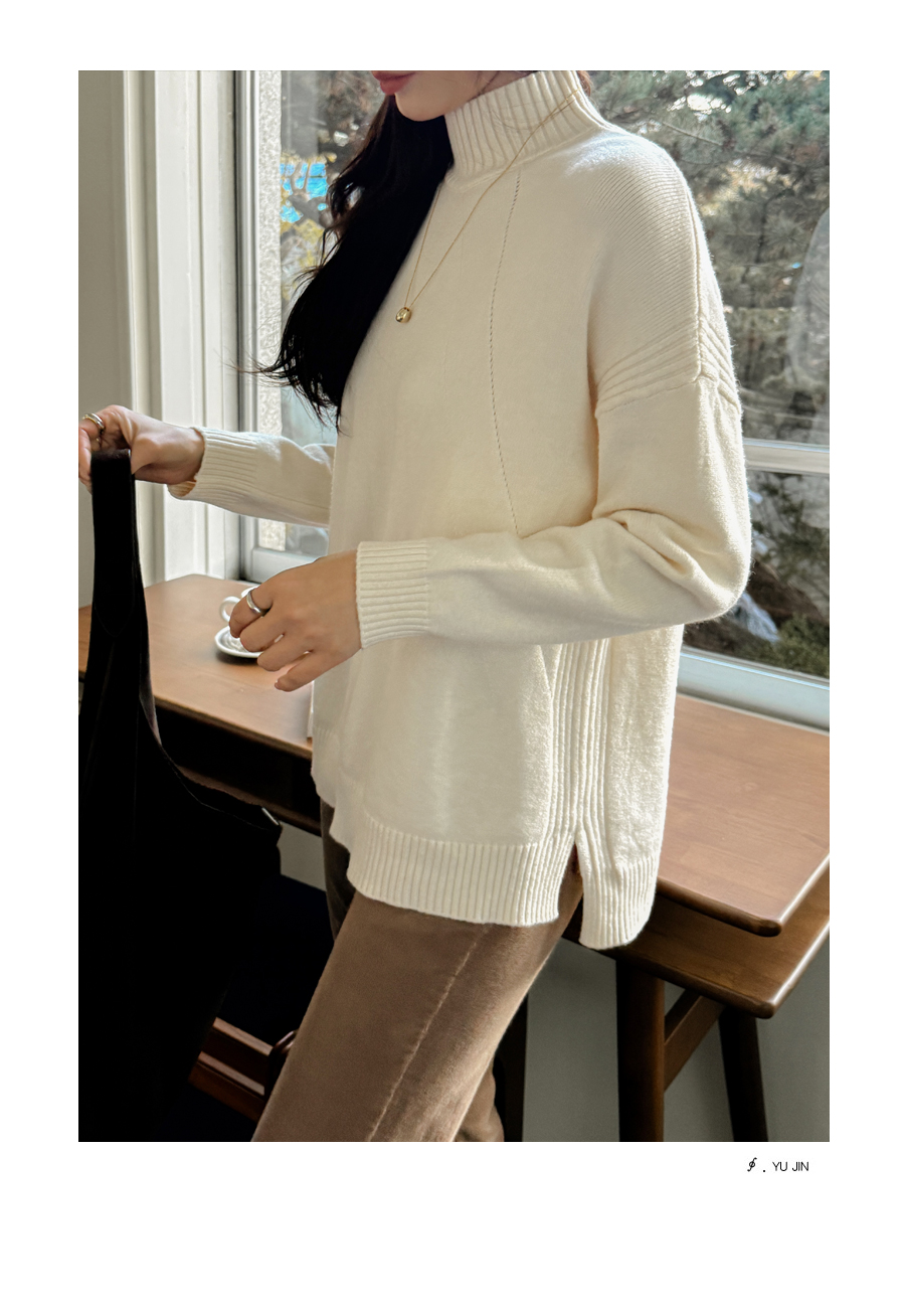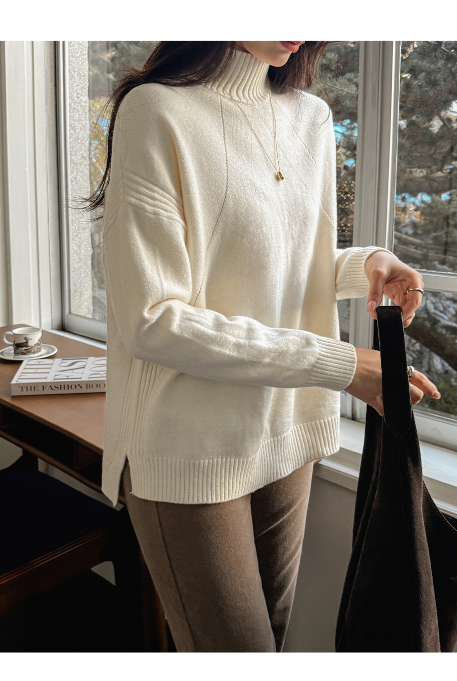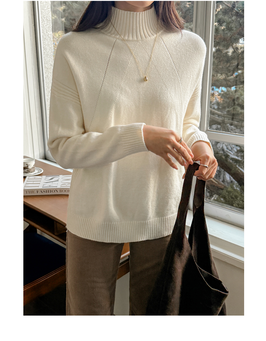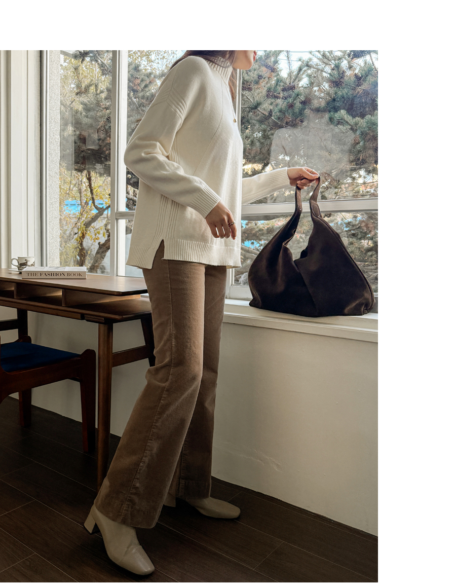 넥과 밑단의 굵직한 골지 짜임이