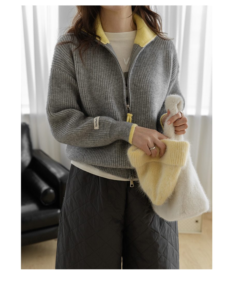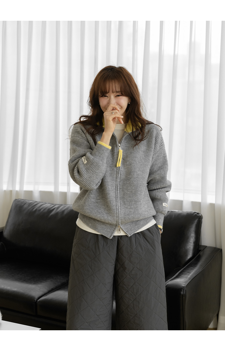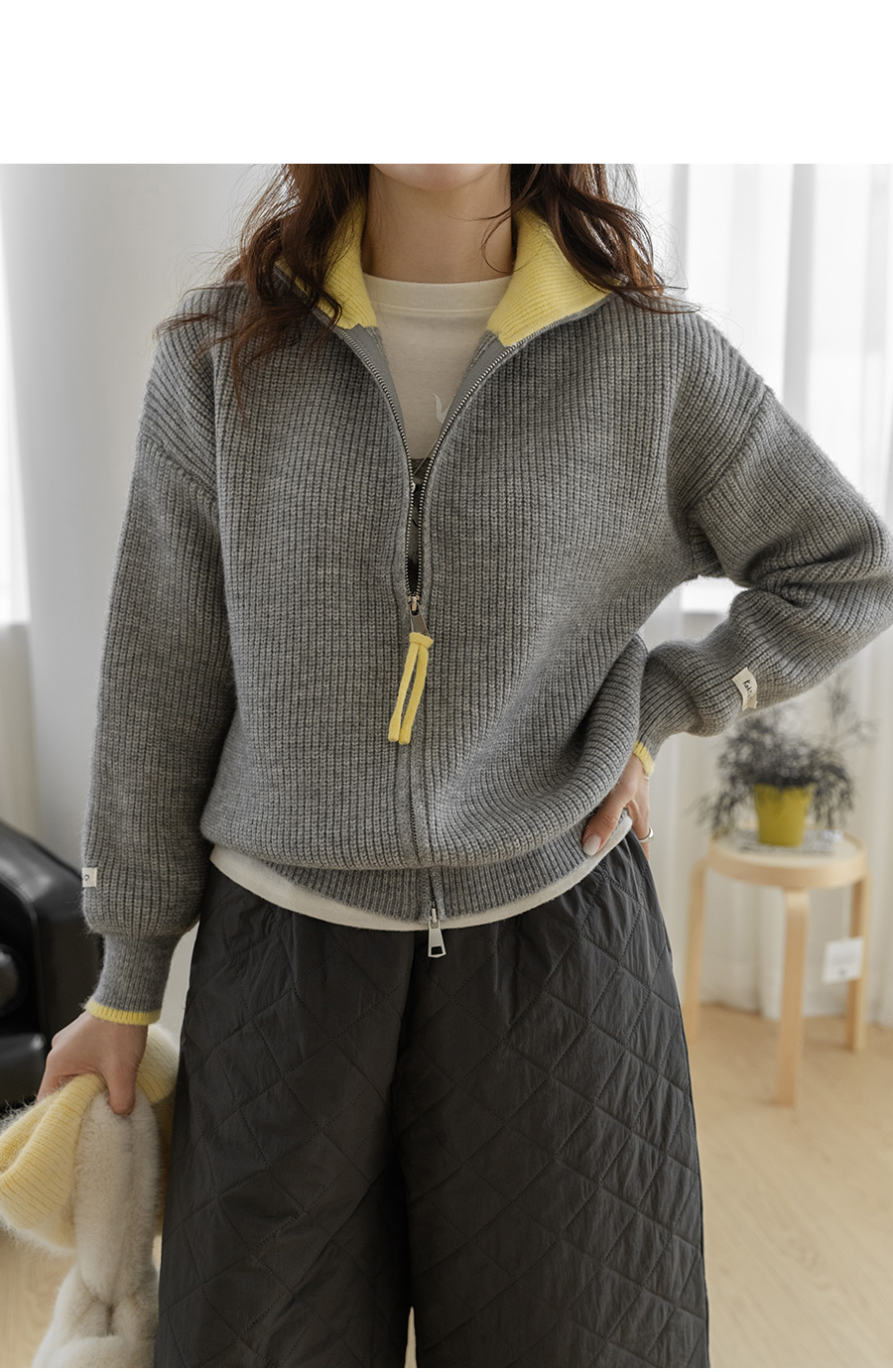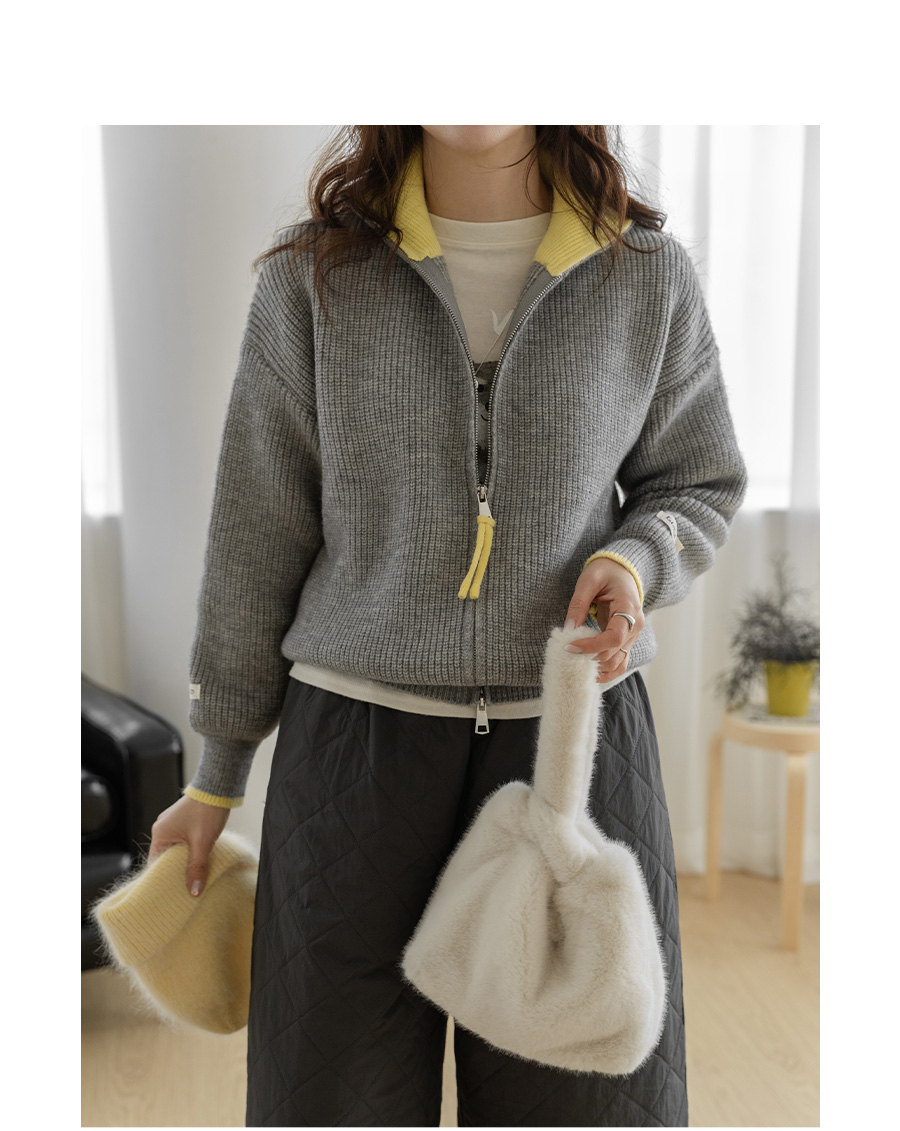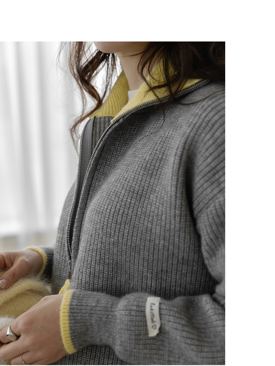 지퍼를 살짝 내리면 배색 카라가 보이면서