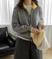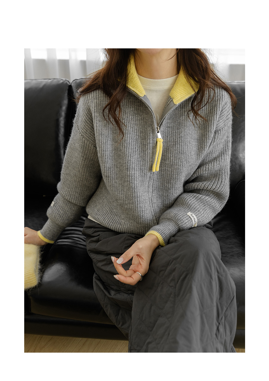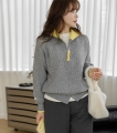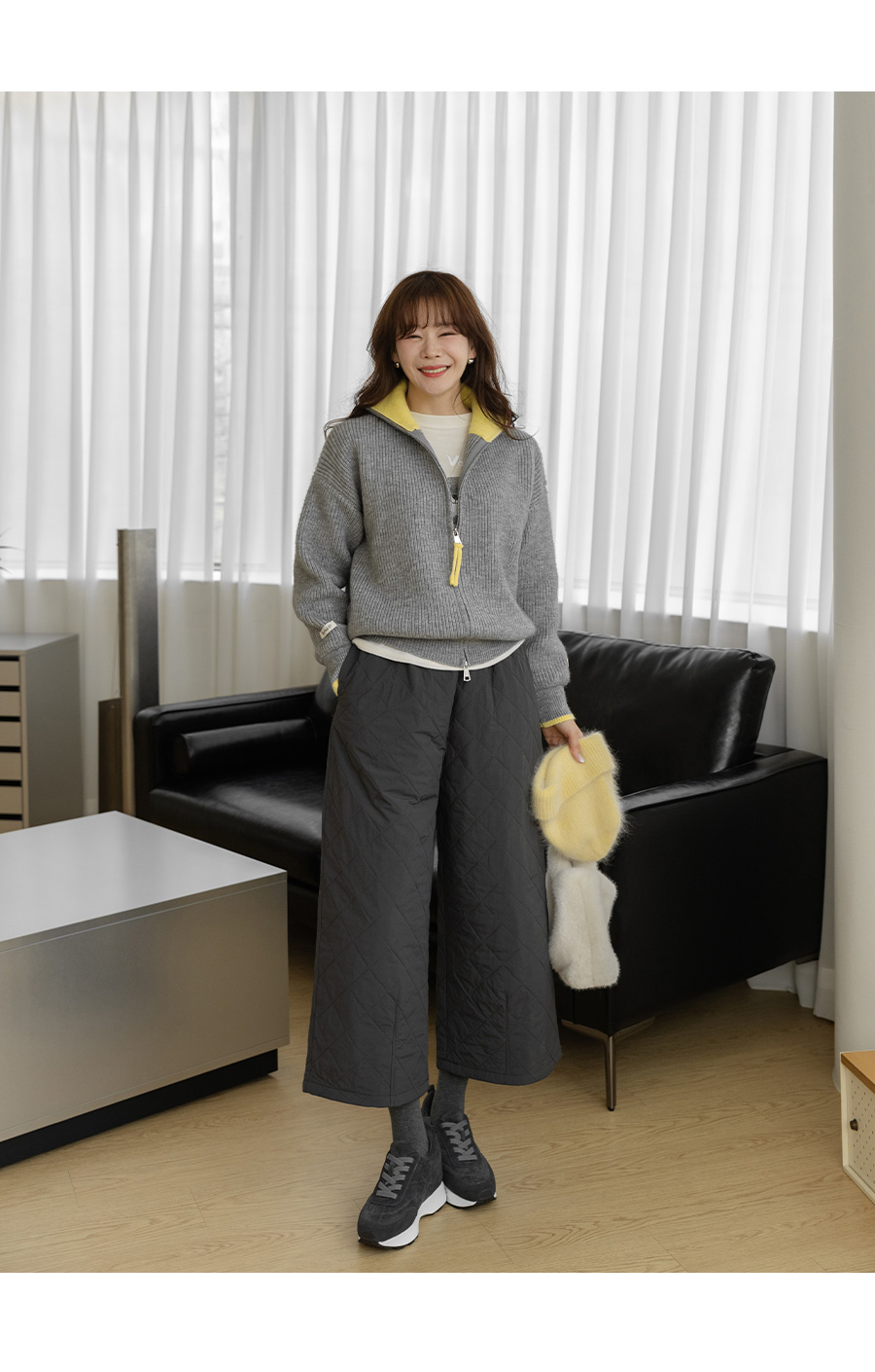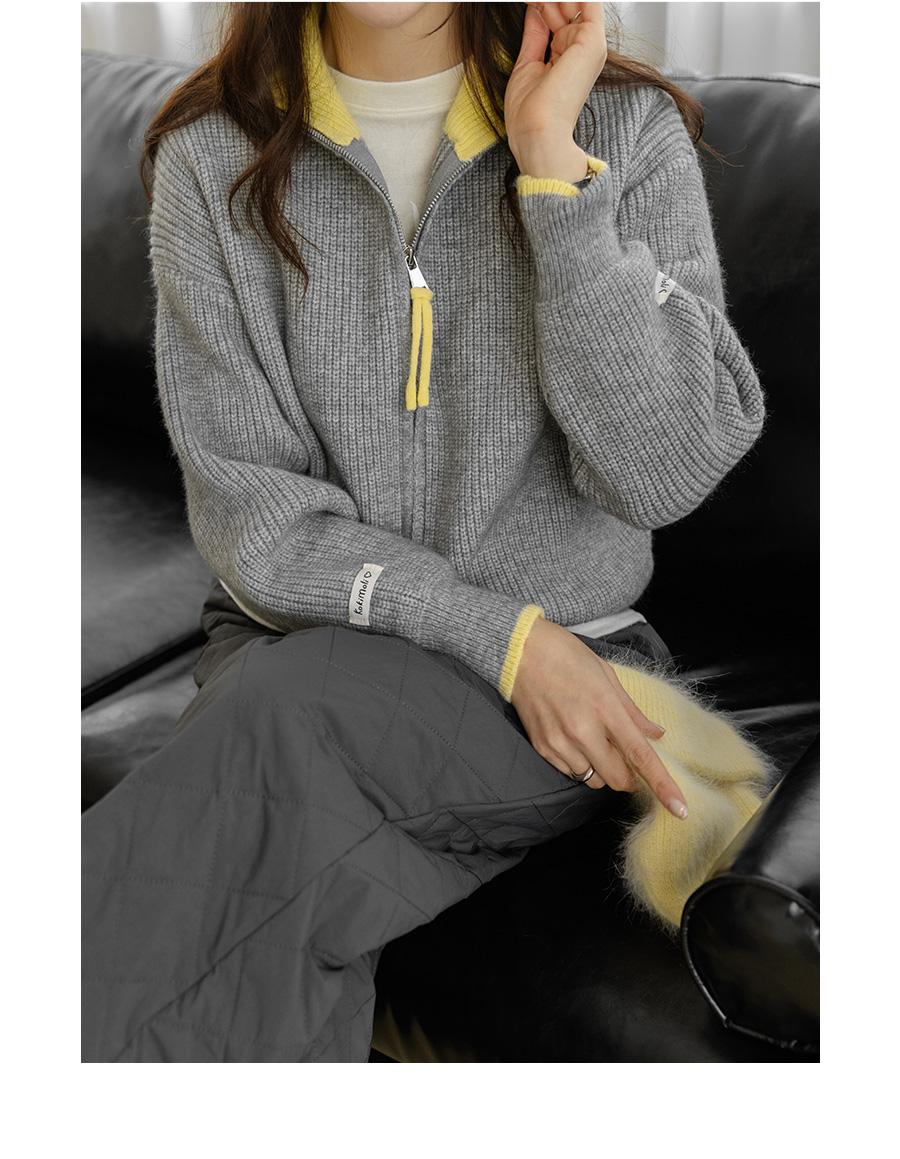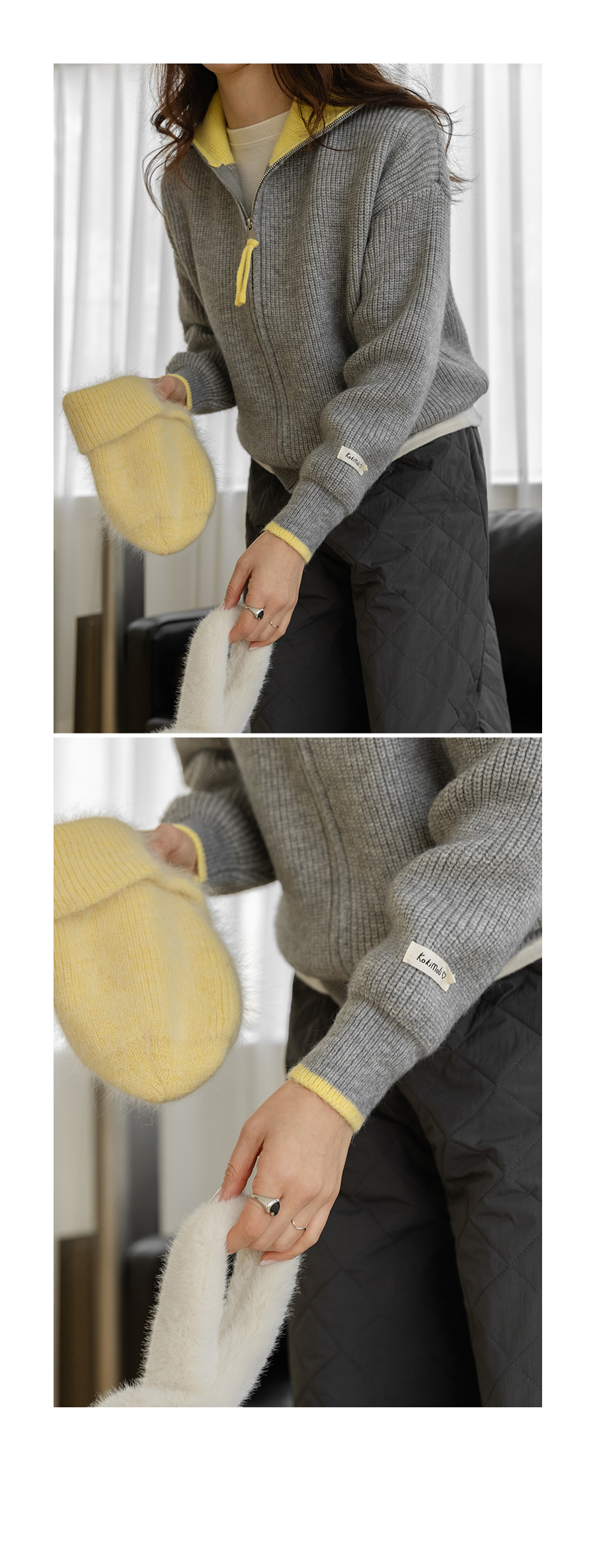 지퍼를 살짝 내리면 배색 카라가 보이면서