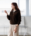 부클 소재와 패딩 후드가 믹스된 니트에요