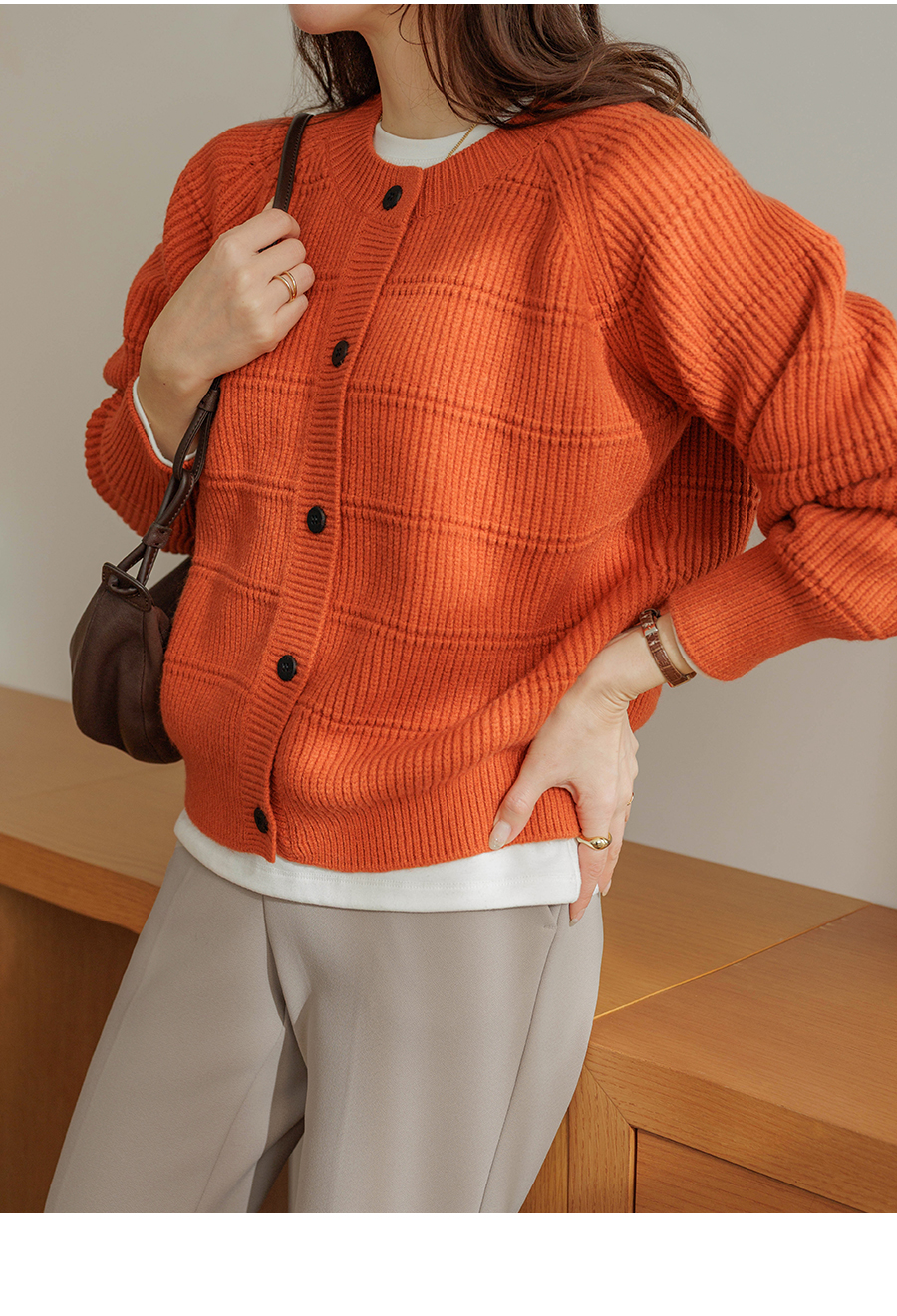 밀도 높은 편직으로 핏이 탄탄한 가디건이에요