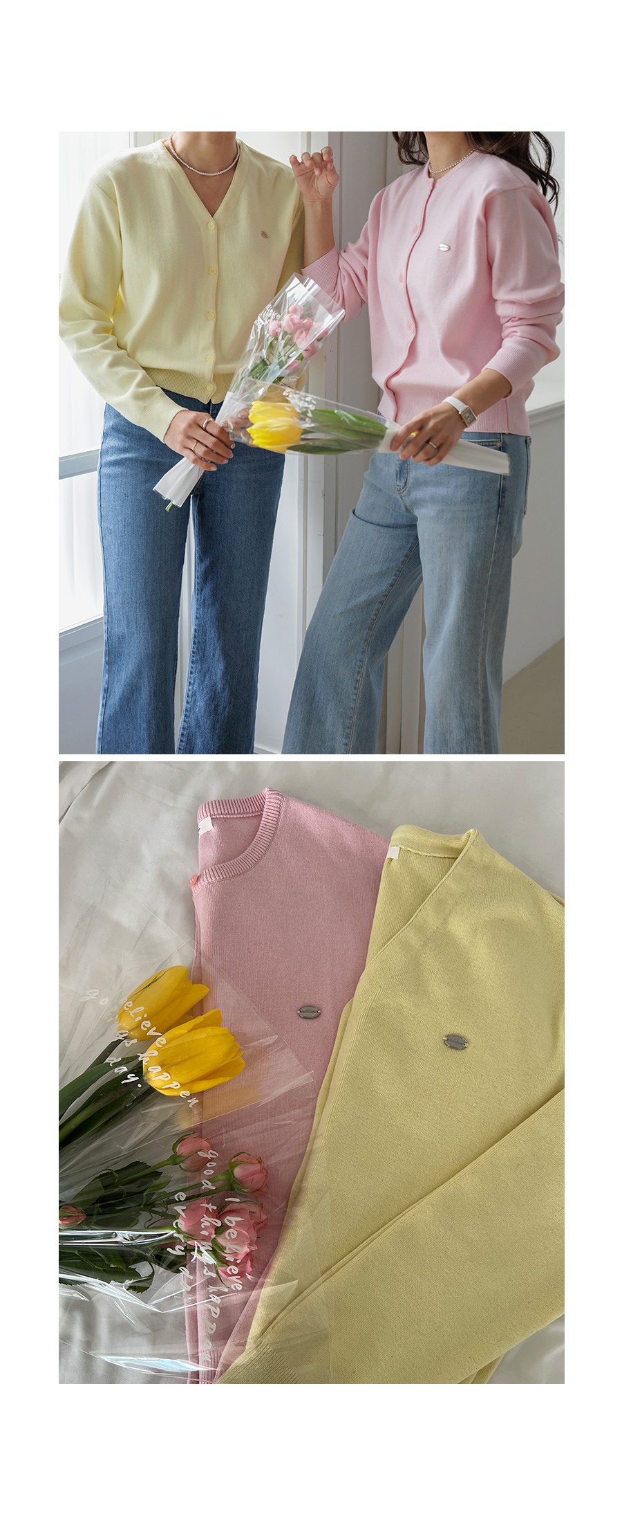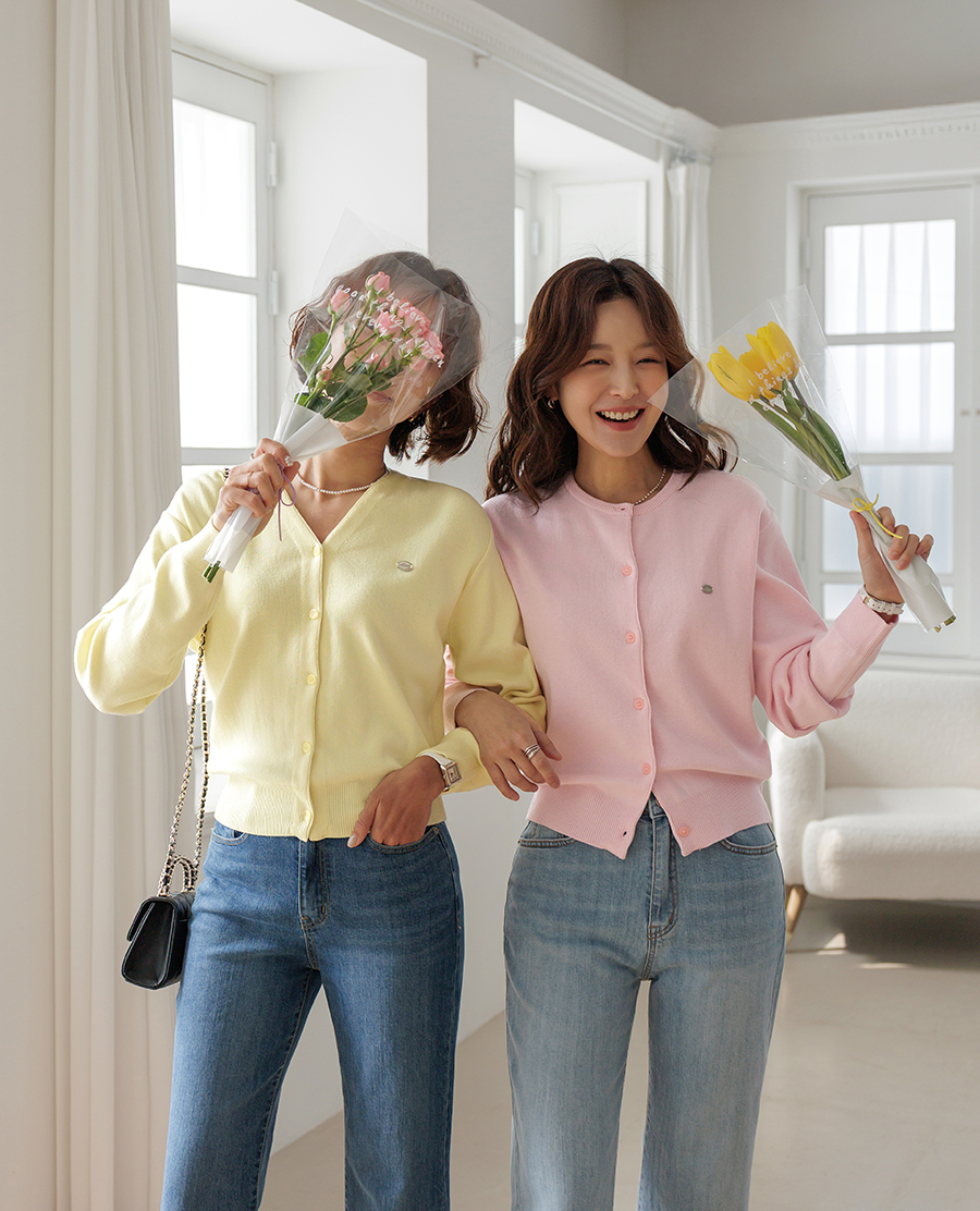 エブリデイコットンニットカーディガン(2Typesラウンドネック/Vネック)