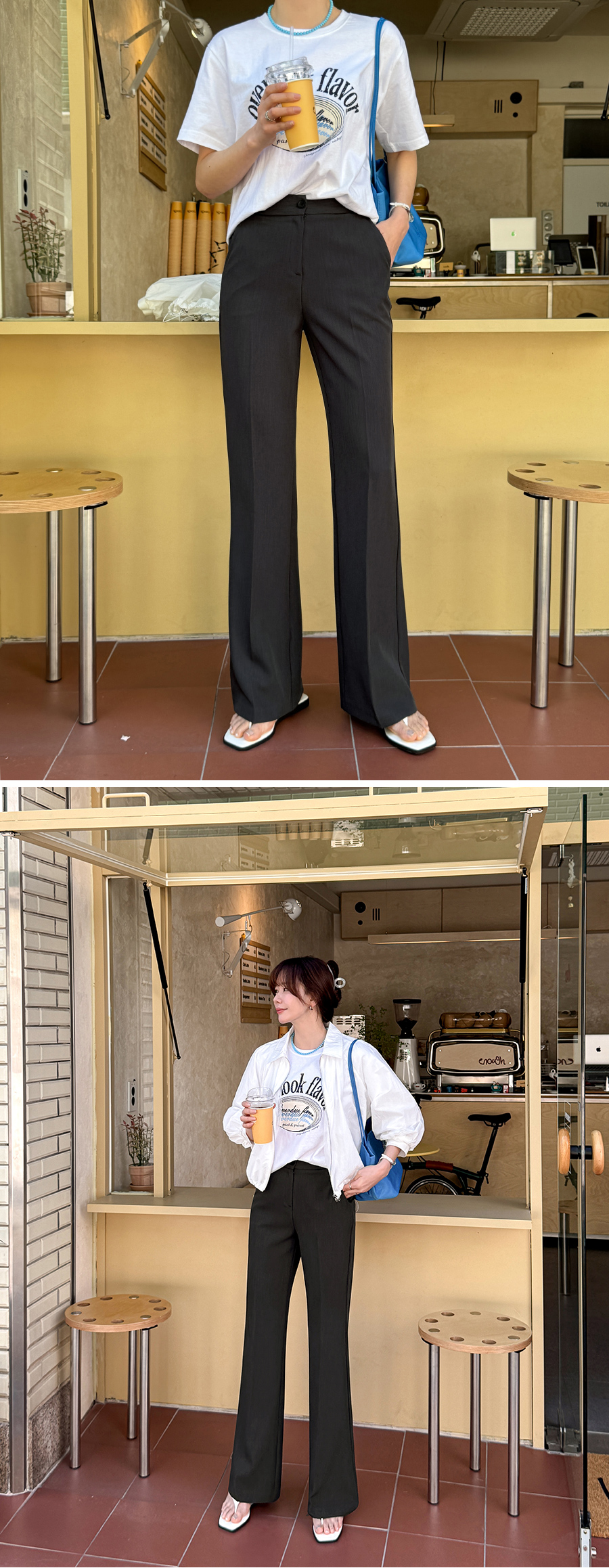 정돈된 듯 깔끔한 속에 느껴지는 세련된 실루엣의 슬랙스
