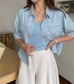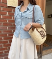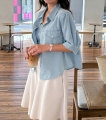 밑단 언밸런스 기장에 앞부분 세미 크롭으로 경쾌한 무드