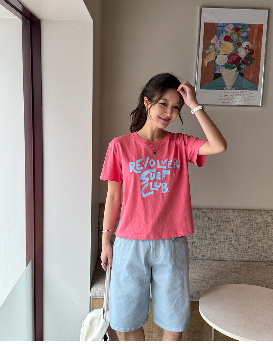ふっくら跳ねるカラーのレタリングがポイントになってくれる半そでティー!適度にゆとりのあるスタンダードフィットで楽に楽しんでください:) (3color)